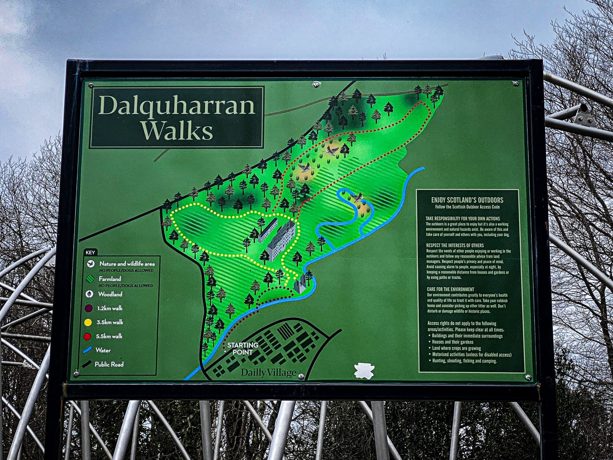 Dalquharran Map Walk Colours 🟣, 🟡 & 🔴 1.2 Km, 3.5 km & 5.5 km respectively.