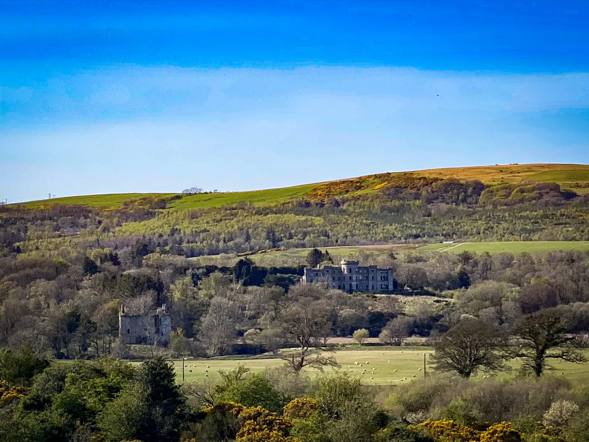 The journey along the narrow track past Balcamie Farm offers splendid views and the chance to spot farm animals grazing in the fields, and a great view of the Dalquharran castles.